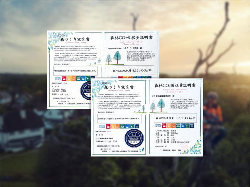 持続可能な森林づくりを通じて、『楽しむ』を仲間と共有し、『輝く社会』の実現に向けて努力しています。
