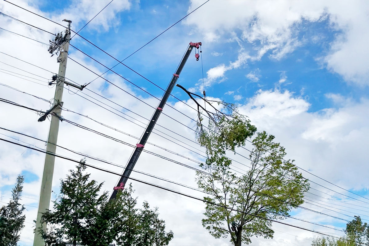 倒木や枯損木など、電線・道路・建物に影響を与える恐れのある木を安全かつ迅速に伐採する専門業務です。